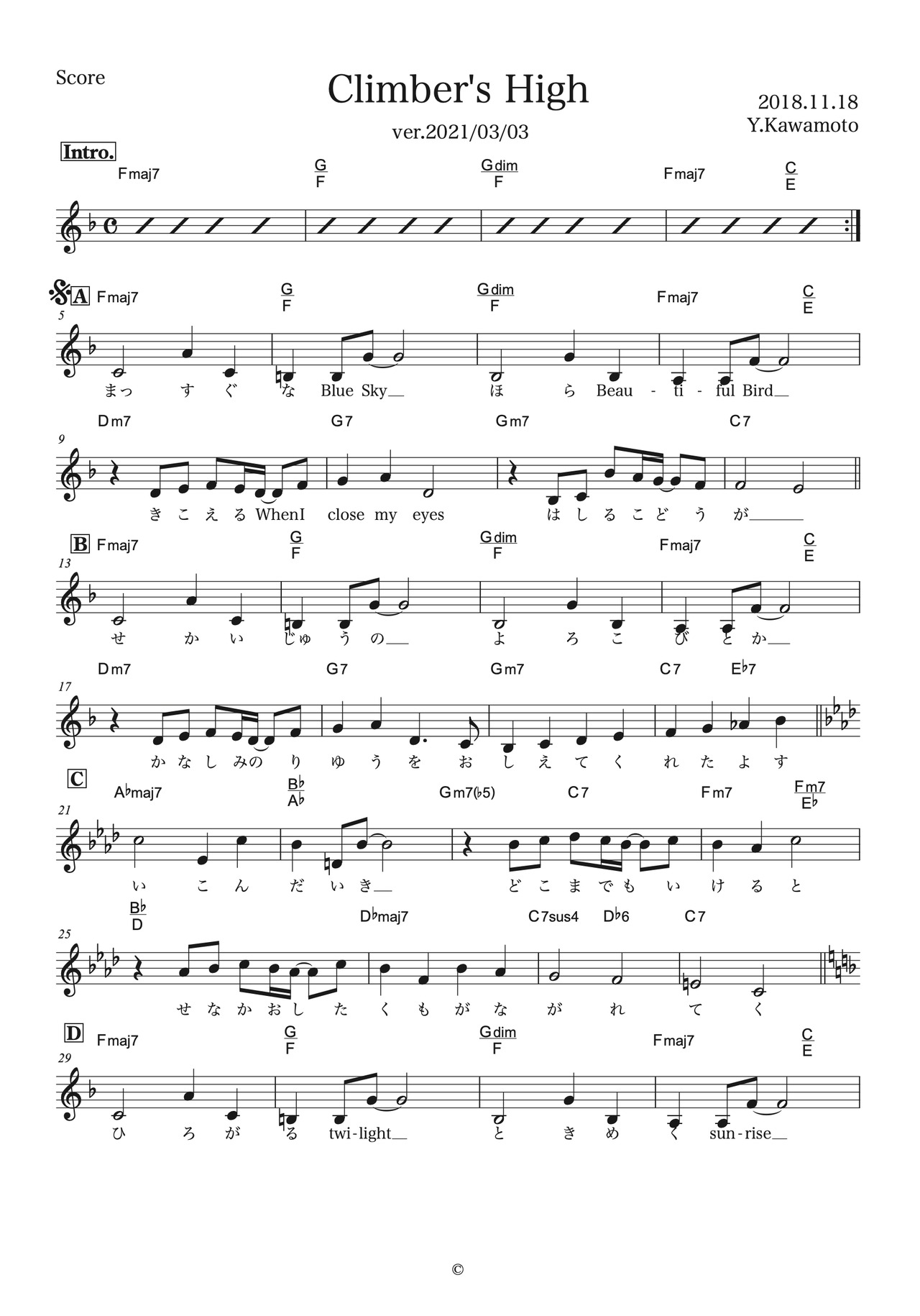 Climber's Highの譜面です。カラオケと合わせてご使用ください。